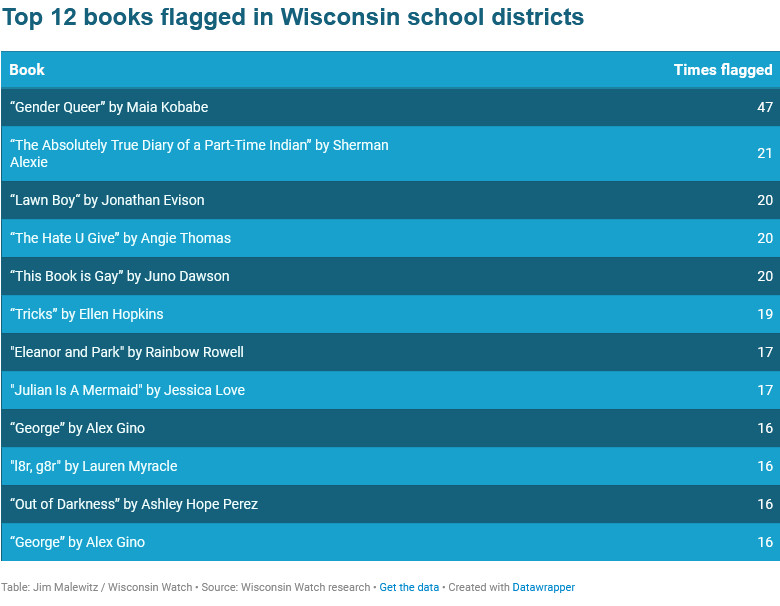 “Gender Queer,” the state’s most targeted book according to the Wisconsin Watch analysis, also topped the American Library Association’s national list of challenged books in 2023 and was fifth on PEN’s list of challenges during the 2022-23 school year.